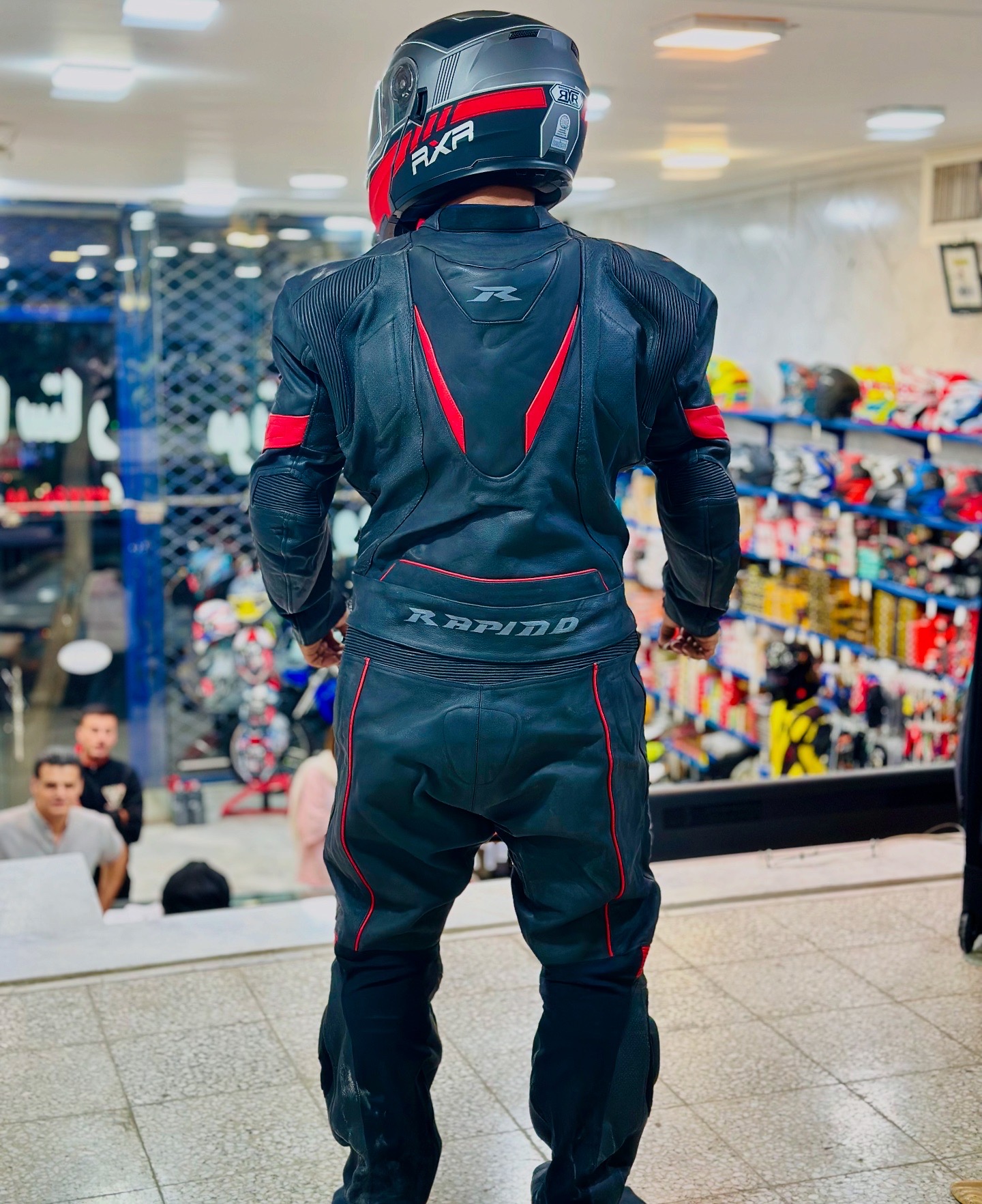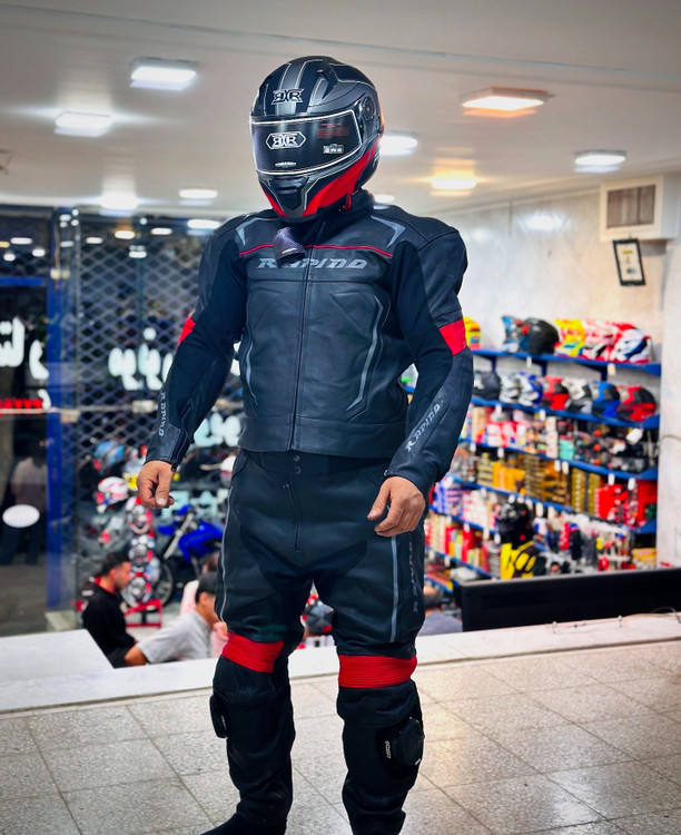 ست کاپشن شلوار چرمی موتورسواری مناسب ریس برند راپیدو RAPIDO